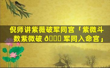 倪师讲紫薇破军同宫「紫微斗数紫微破 🐈 军同入命宫」