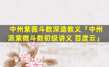 以下是 🦁 关于“中州派紫微斗数初级讲义 百 🕊 度云”的说明与建议: