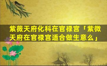 在紫微斗数中紫微,“天府在官禄宫”这,一,星曜组合需结合整体命盘 🦁 来分 🌼 析其是否适合做生意以下是相关解读: