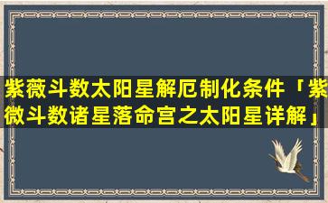 要理解紫微斗数中太阳星解“厄制化”的条件,需从紫微斗 🌳 数的 🐺 核心概念星(曜属 🕷 性、宫、位、四化制化关系等)入,手结合太阳星的特质与命盘格局分析。以下是详细解析: