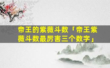 简言之,紫微斗数无“帝王 🐺 最厉害三个数字”的,固,定说法其分析是综合性的需从星曜组合、宫、位,四“化”等整体层面判断格局而非单一数字或少 🐺 数星曜能决定。若,对,命“盘分析感兴趣建议结合专业命理师对整体格局的解读而非简化为三个数字”。