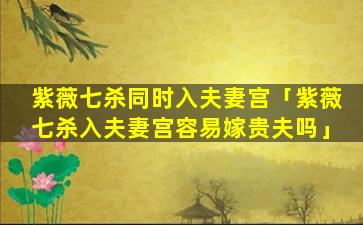 在 🐋 紫微斗数中紫,薇七杀入夫妻宫 的,婚姻情况需 🦢 结合整体命盘和星曜互动综合 🦉 分析不能简单地以“容易嫁贵夫”来,绝对判断原因如下:
