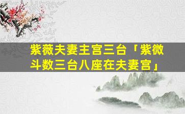 “紫薇夫妻主宫三台”属于紫微斗数命理术语,需从命 🦁 理概念拆解理 🐧 解: