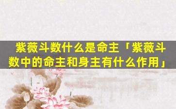 在紫微斗数紫(薇斗数)体系中,“命主”是,核心 🌷 概念之一主要包含两层关键内涵: