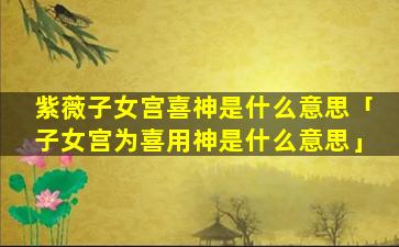 3. “紫薇 🦄 子女 🦟 宫喜神”的核 🐟 心逻辑