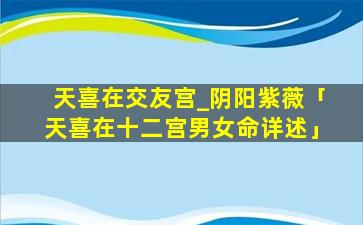 以下是针对“天喜在交 🐞 友宫_阴阳紫薇”的紫微斗数相关解读(结合斗数基本概念与 🐡 常见含义分析):