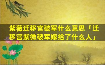 要解答“迁移宫紫微破军嫁给了什 🦋 么人”,需,先“明”确紫微,斗“数”的基本概念与命盘分析逻辑但仅凭迁移宫紫微破军这一信息无法直接得出嫁给什么人的结论(因,缺乏具体命盘细节如夫妻 🦁 宫、三、方四正宫位互动等)。以,下是相关概念与分析思路帮你理解核心逻辑: