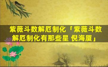 要解答“紫薇斗数解厄制化有哪些星(结合倪海厦观点)”,需从紫 🦆 薇斗数星曜功能和倪海厦对命理健康结合的理论两方面梳理: