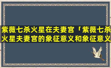 你表述中“象征意义和象征意义”疑似输入重复,核 🦆 心需求是了解 “紫微七杀+火”星在夫妻宫的象征意义 🐋 。