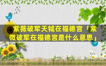 要解析“紫微破军天钺在福德宫”这一紫微斗数命理配置,需先明确各元素的含 🐠 义与组合逻辑: